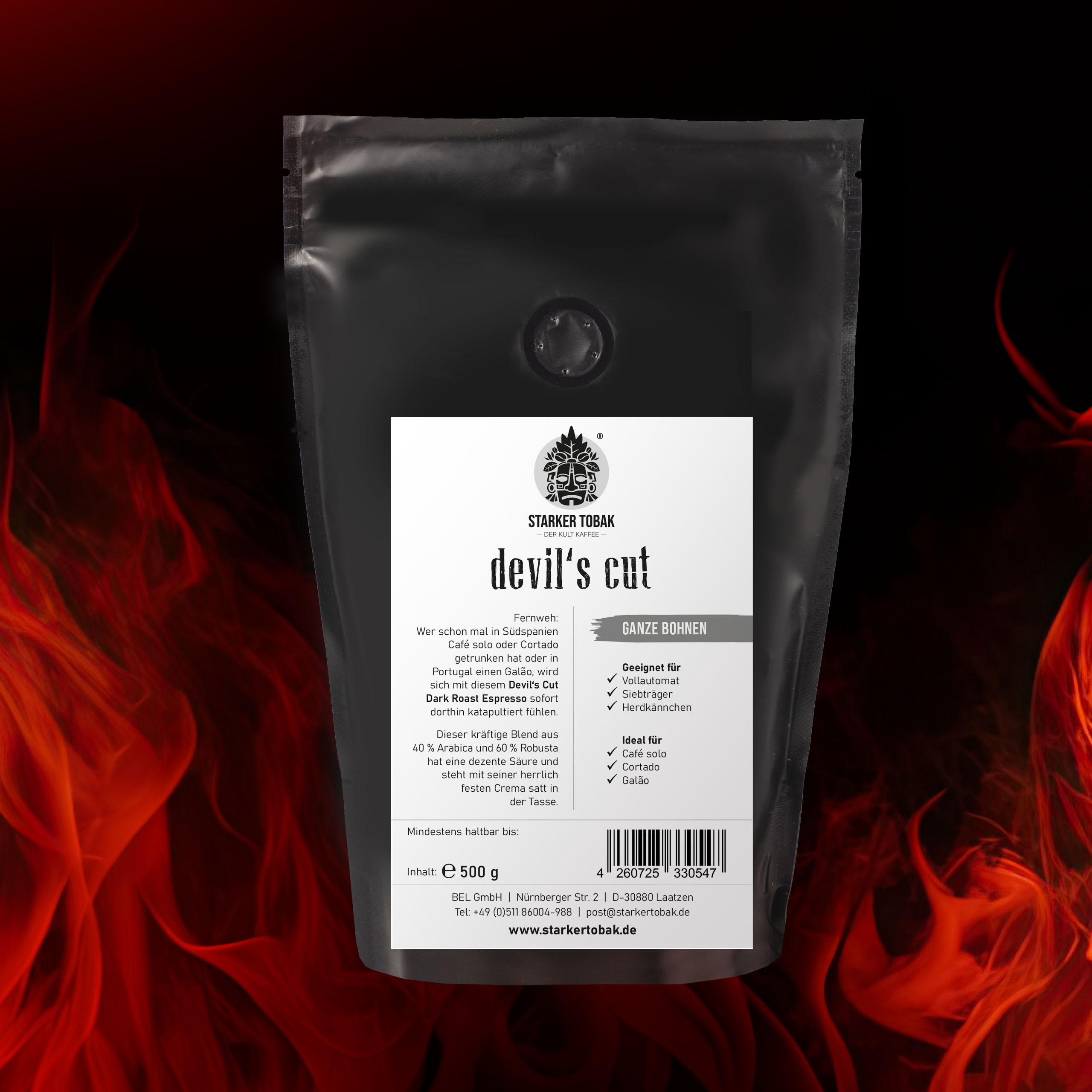 Fernweh: Wer schon mal in Südspanien Café solo oder Cortado getrunken hat oder in Portugal einen Galão, wird sich mit diesem Devil‘s Cut Dark Roast Espresso sofort dorthin katapultiert fühlen. Dieser kräftige Blend aus 40 % Arabica und 60 % Robusta hat eine dezente Säure und steht mit seiner herrlich festen Crema satt in der Tasse.
